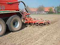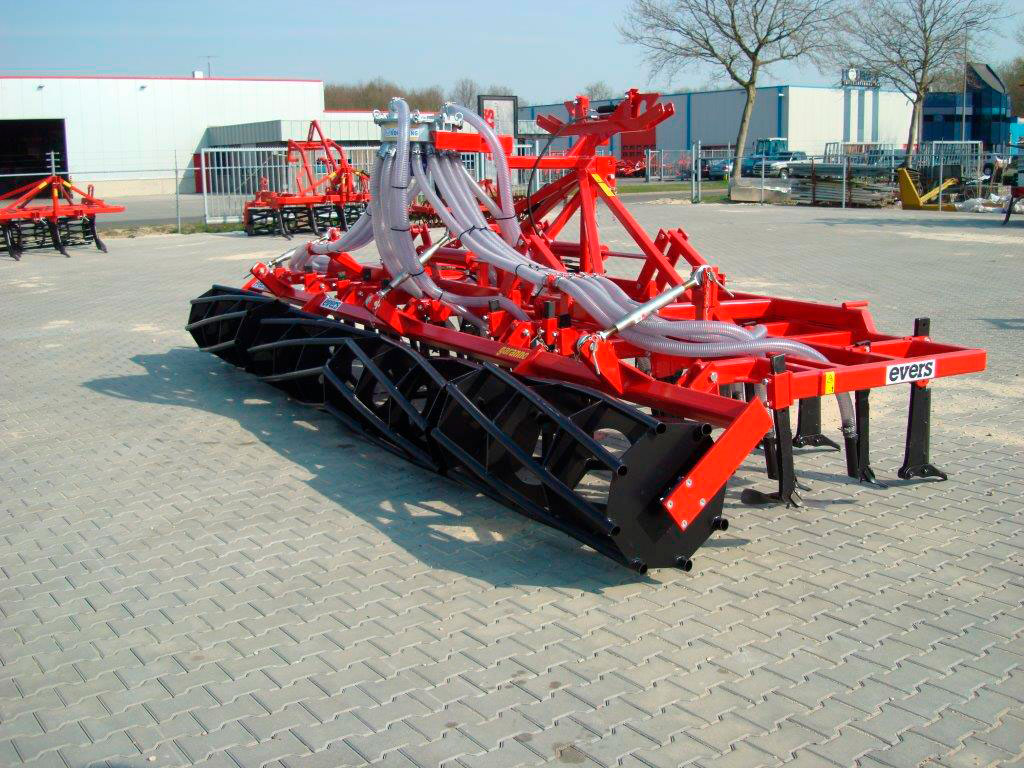 Поскольку часто необходимо внести много навоза за короткое время, компания «Эверс Агро» решилась на раздельную концепцию при посеве и внесении удобрений. Там, где сеялка обычно останавливает унавоживание, потери производительности предотвращаются. Можно уже внести навоз прежде, чем настанет пора сева кукурузы. Агрегат «Гаранно / Garanno» поставляется с рабочей шириной 6 м с 8 глубокорыхлительными зубьями на расстоянии 75 см.