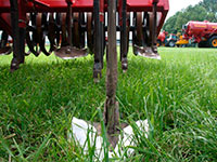Для того, чтобы при нынешних строгих условиях унавоживания всё же добиваться оптимальных урожаев, крайне важно, чтобы жидкий навоз как можно эффективно применялся на тех участках, где он больше всего необходим. То есть в рядах растений, как можно гуще на корнях. Как раз для этого компания «Эверс» разработала прецизионный аппликатор «Гаранно / Garanno». Данная машина была детально испытана в 2010 году, а именно: главным образом на кукурузе, а также на картофеле. После нескольких адаптаций была намечена определенная модель, и на сезон 2011 г. она была принята в производство. С помощью аппликатора «Гаранно / Garanno» проводится последняя технологическая операция перед севом или посадкой. Жидкий навоз разбрызгивается с междурядным расстоянием 75 см. При этом почва рыхлится прямыми зубьями при свободном проходе 75 на глубину 20-40 см. Благодаря этому вспахиваются проблемные слои, чтобы лучше вентилировать почву, а также гарантировать оптимальный водный баланс в почве. После этого с помощью последующего ряда зубьев жидкий навоз вносится в почву на желаемую глубину. После разбрызгивания жидкого навоза почва прижимается валиком, чтобы как можно лучше подготовить посевное ложе. Благодаря применению системы «GPS» при разбрасывании жидкого навоза можно цифровым образом фиксировать специфические локальные координаты удобряемой площади. Эти данные вводятся в посевной комбинации, так что семена вносятся точно поверх жидкого навоза.