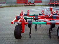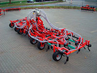 Ширина делает необходимостью использовать опорные колеса. Для настройки глубины модель«Ольденбургер XL / Oldenburger XL» располагает широкими опорными колесами: 4 опорных колеса для версии 6 м, 6 опорных колес для машины с рабочей шириной 7,80 м, 9 м и 10,20 м. Данные колеса можно отрегулировать просто с помощью прочного шпинделя.