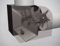 Шаг 4: Нарезные роторы вращаются вокруг контрблоков, не вступая в контакт. Все плавающие и взвешенные частицы в жидкости, такие как волосы, кости, древесина, спутанные предметы, целые растения, силос или трава, нарезаются на мелкие части. Благодаря точному выравниванию нарезного ротора и контрблока фильтр способен использовать минимальную мощность и практически не изнашивается.